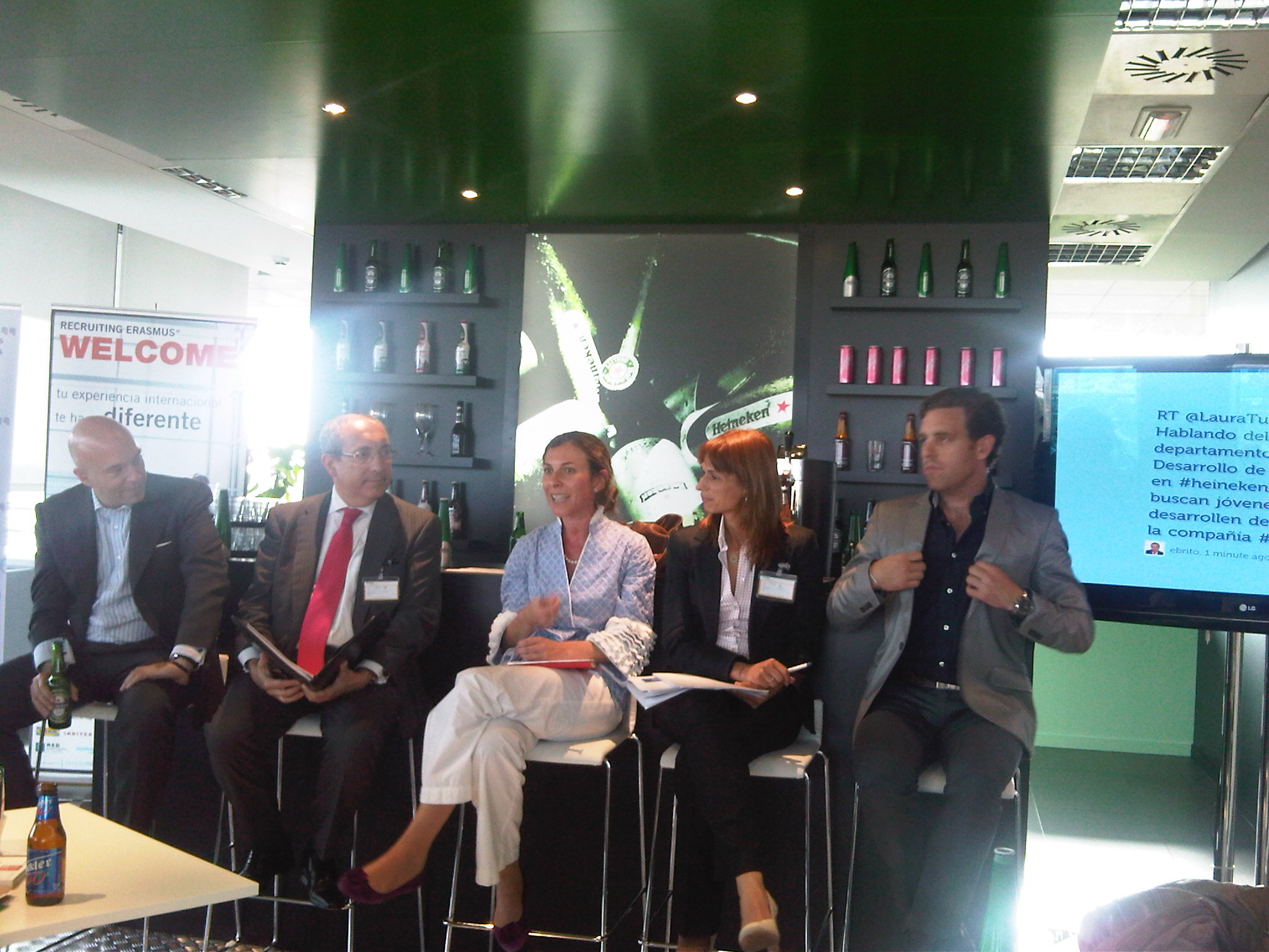La empresa que nos acogió en su sede fue Heineken, así que esa tarde «pensamos en verde» y pudimos escuchar las tres visiones, la de la Universidad, la empresa y antiguos alumnos de ERASMUS y ahora directivos en algunas de las empresas líderes en nuestro país que participan en el programa.