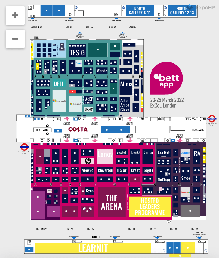 BETT Show está dividido en dos grandes áreas. El pabellón Norte y el pabellón Sur.