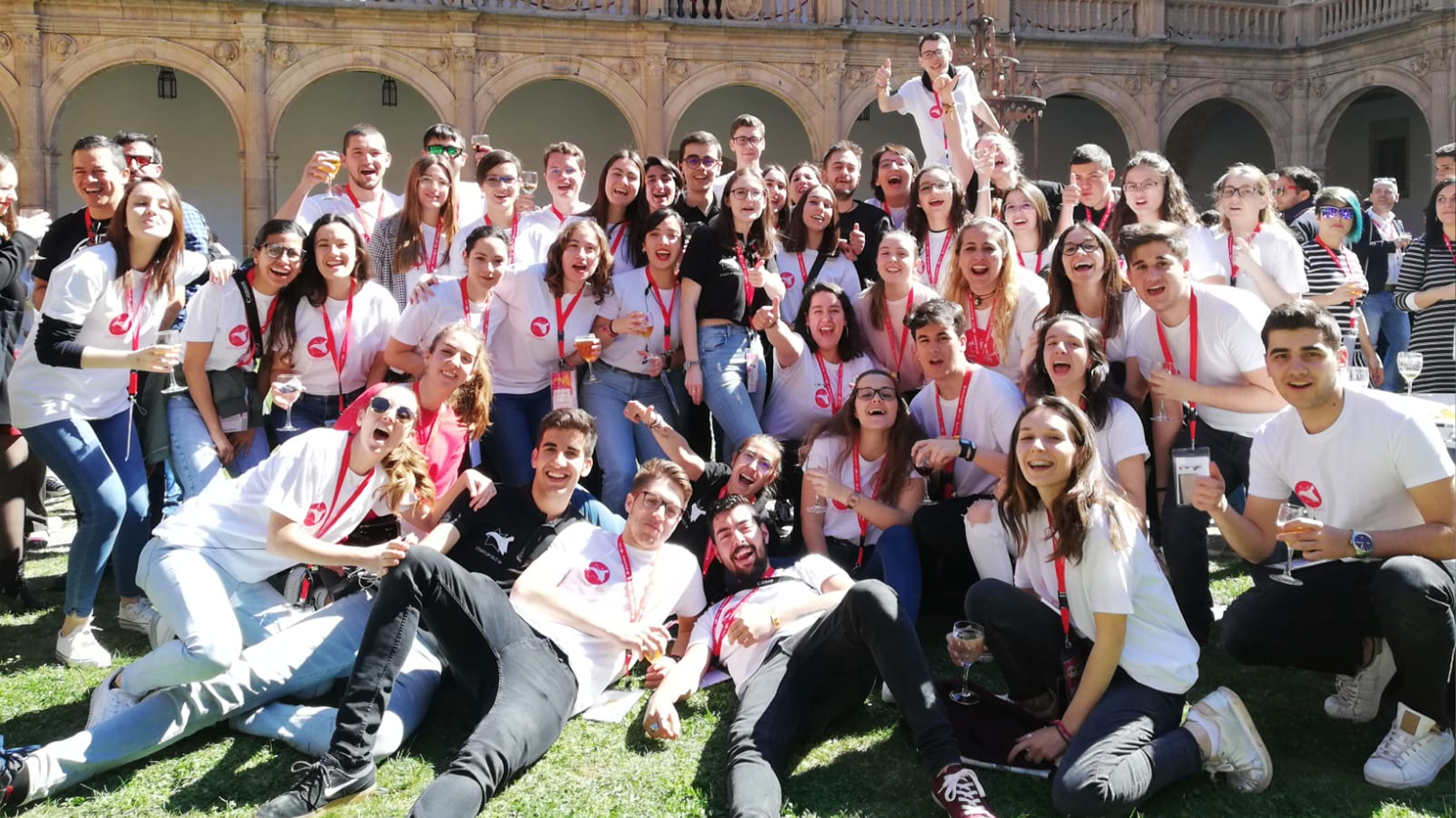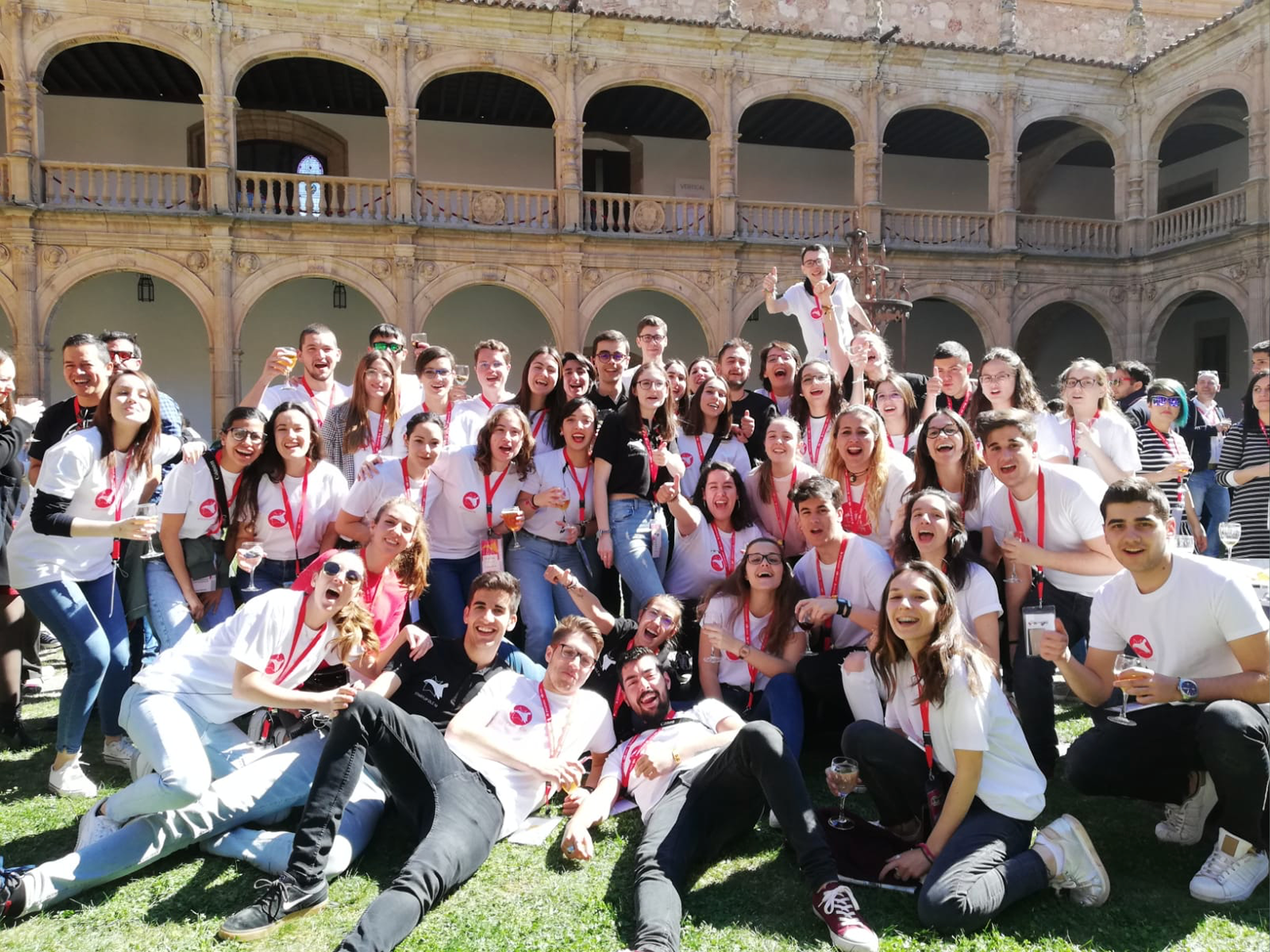 Antes de que se me olvide incluyo foto del equipo, no sé si algo más de 50 voluntarios, estudiantes de la Universidad de Salamanca. Se lo curran de lujo, están por todas partes para ayudarte a moverte por el evento ya que ocupamos varios espacios. Son súper majos y algunos ya son incluso amigos.